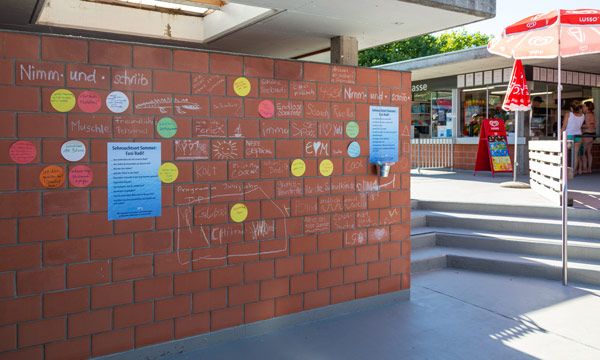 Letzten Samstag war es dann so weit und wie es der Zufall wollte, just am Morgen vom Badifest. Wer nun wissen möchte, was die Menschen im Dorf mit unserer Badi verbindet, bekommt die Möglichkeit in der Badi selbst. Auf der Backsteinwand gegenüber vom Eingang/Kiosk wurden die Erinnerungen und Geschichten vom Morgen weiter ergänzt: Wunderbar, was da so alles zusammengekommen ist. Eine Zusammenfassung dieser Geschichten und Erinnerungen finden Sie hier.