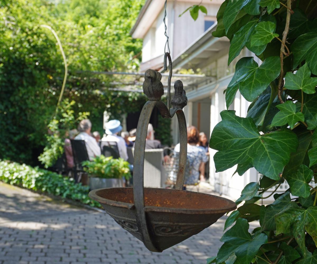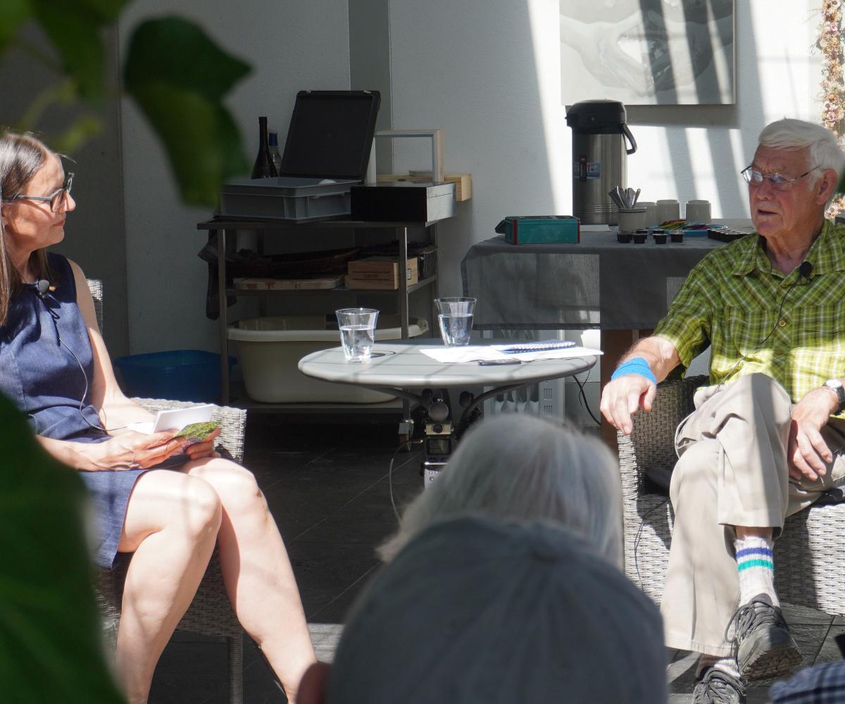 Zum Schluss des von Myriam einfühlsam geführten Interviews konnten in einer Fragerunde die Gäste nochmals vom grossen Erfahrungsschatz von Fritz profitieren. Als kleines Geschenk zum Mitnehmen gab es Samenbomben mit einer Mischung von essbaren Pflanzen. Nach einer kleinen Umbaupause lockte das vielfältige Kuchenbuffet. Dieses und der Garten wurde ausgiebig genossen und mit vielen Begegnungen und Gesprächen klang der Nachmittag aus.